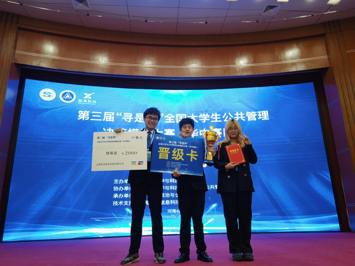本科生喜获全国大学生公共管理决策模拟大赛(华中赛区)特等奖