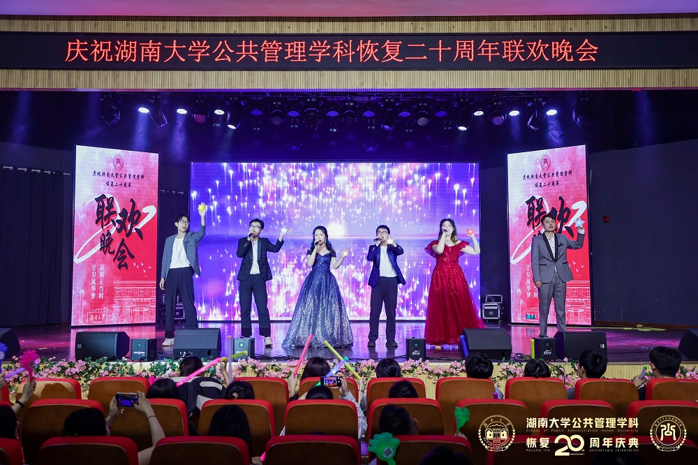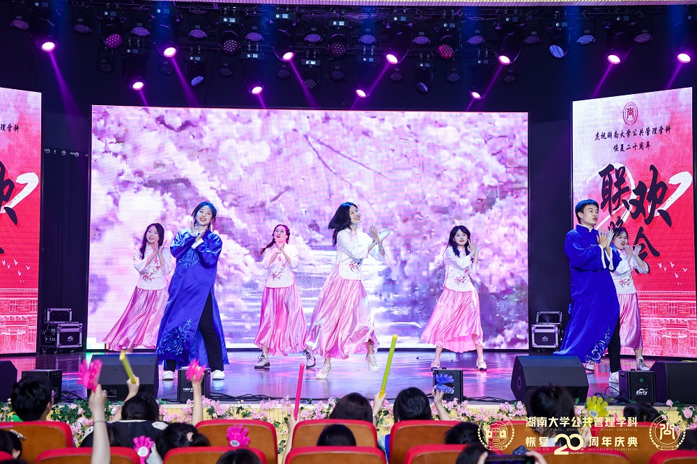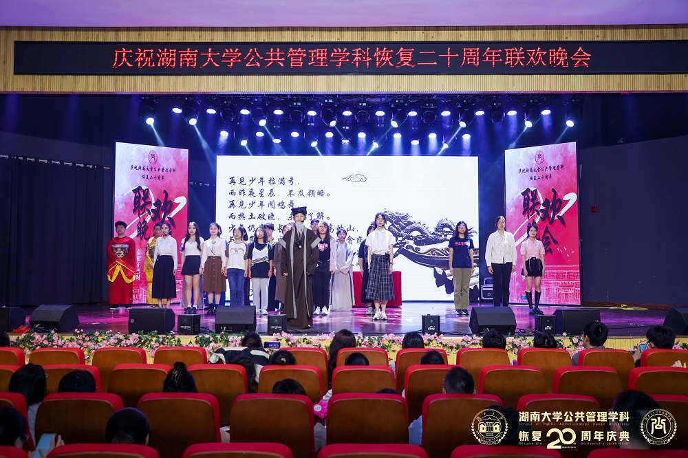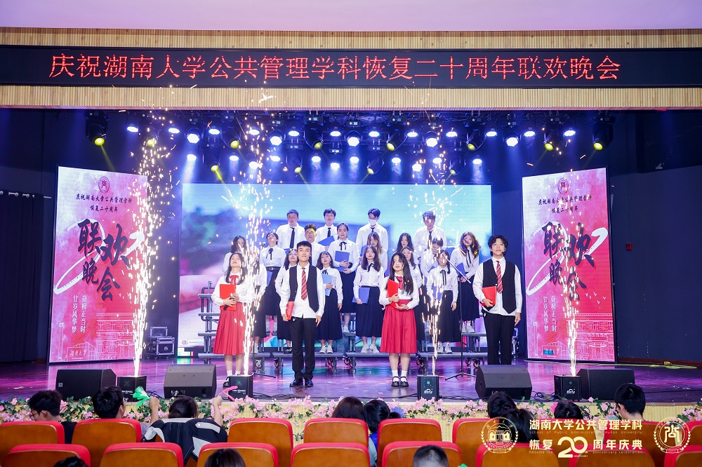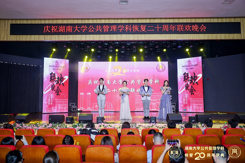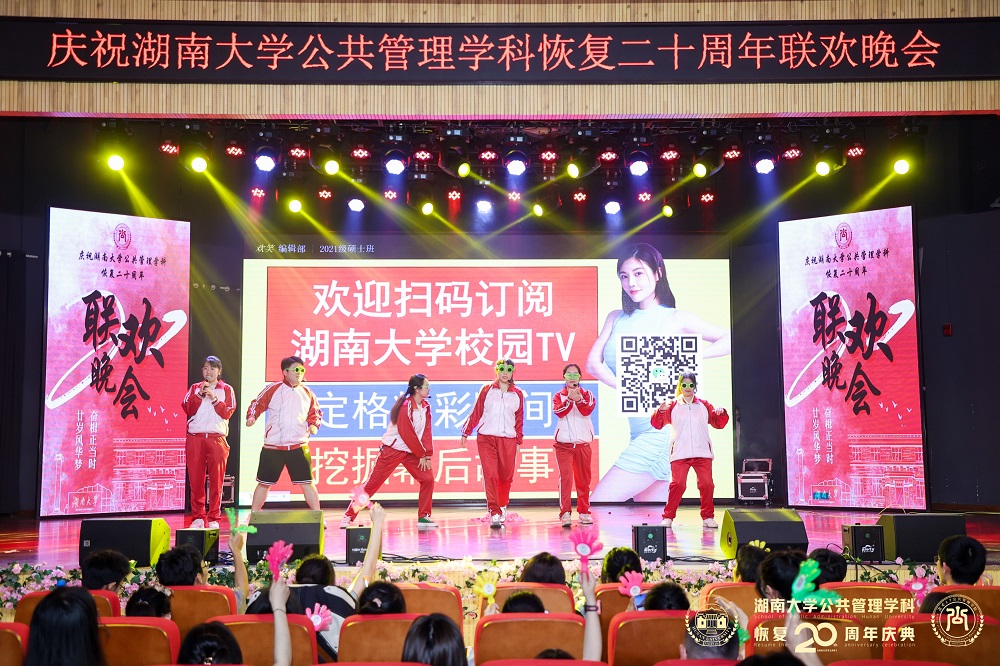 联欢会依照“栉风沐雨,薪火相传”、“上下求索,砥砺前行”、“风华正茂,未来可期”三个主题依次呈现,展现了偷拍网 公共管理学科恢复二十年的发展历程,表达出湖大公管人对学院蒸蒸日上发展态势的喜悦衷情和对学院未来的憧憬祝福。