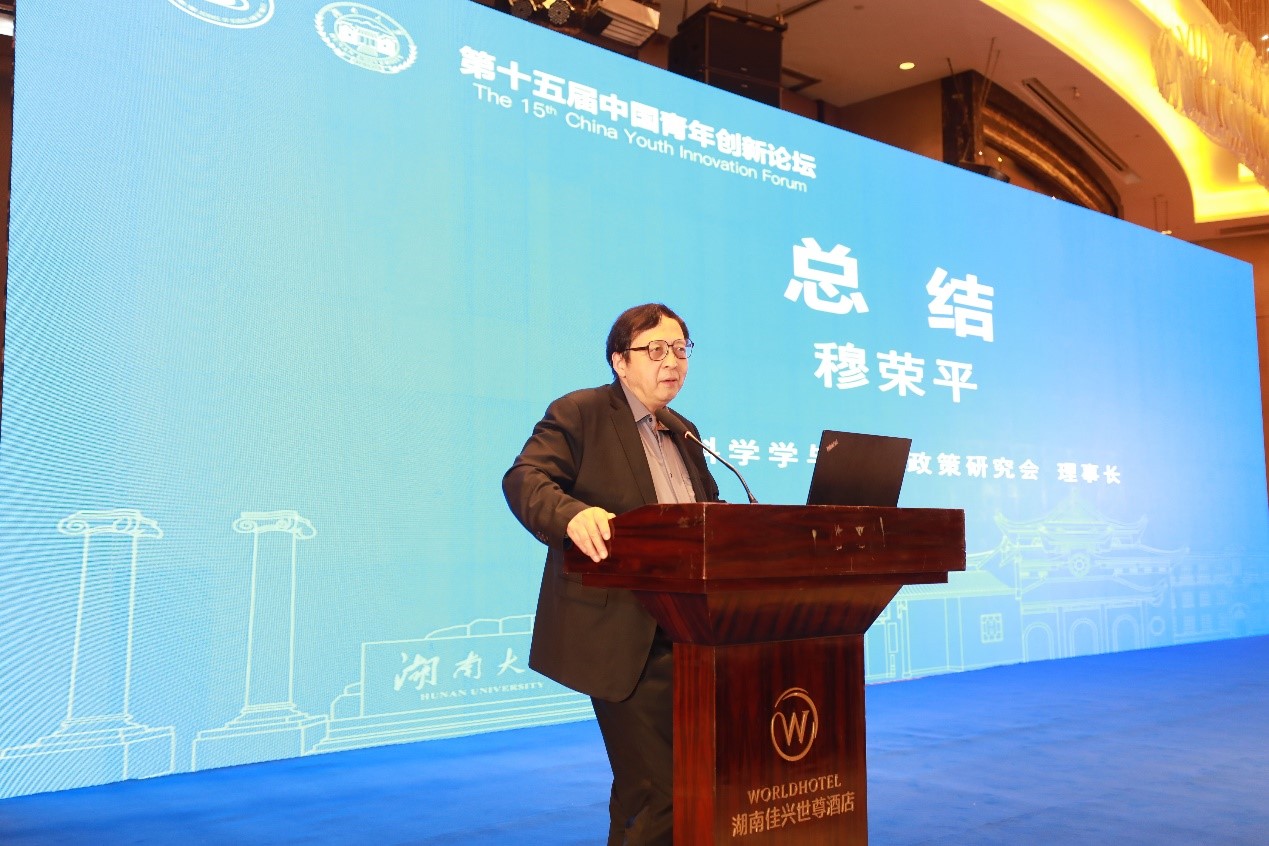 穆荣平理事长发表会议总结。他首先总结和肯定了本次青年创新论坛的会议成果,并鼓励大家保持批判的科研思维;其次,对各位参会学者与工作人员表示衷心感谢,期待明年与各位专家学者相聚于下一届中国青年创新论坛。