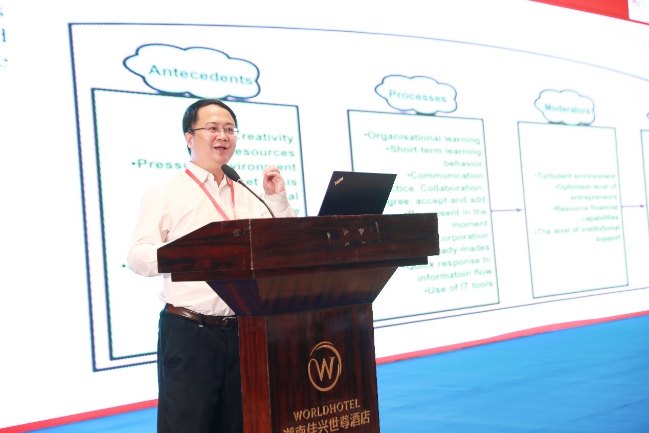 浙江工商大学副校长、浙江工商大学工商管理学院(MBA学院)教授陈衍泰作了题为“动态能力演化研究的多元视角及整合框架——基于组织惯例、企业家精神和即兴能力三视角”的主旨报告。他指出,当前创新活动发生了跨界融合的出现、新产品迭代速度快、产品的智能和链接特征等较大变化,更加注重数据驱动的发展模式。因此,陈校长基于“大数据属性”与动态能力前因互动的基本逻辑,从动态能力的组织惯例、企业家精神和即兴能力三个视角重点研究基于数据驱动的企业动态能力构成与发展的过程规律及内在机制。