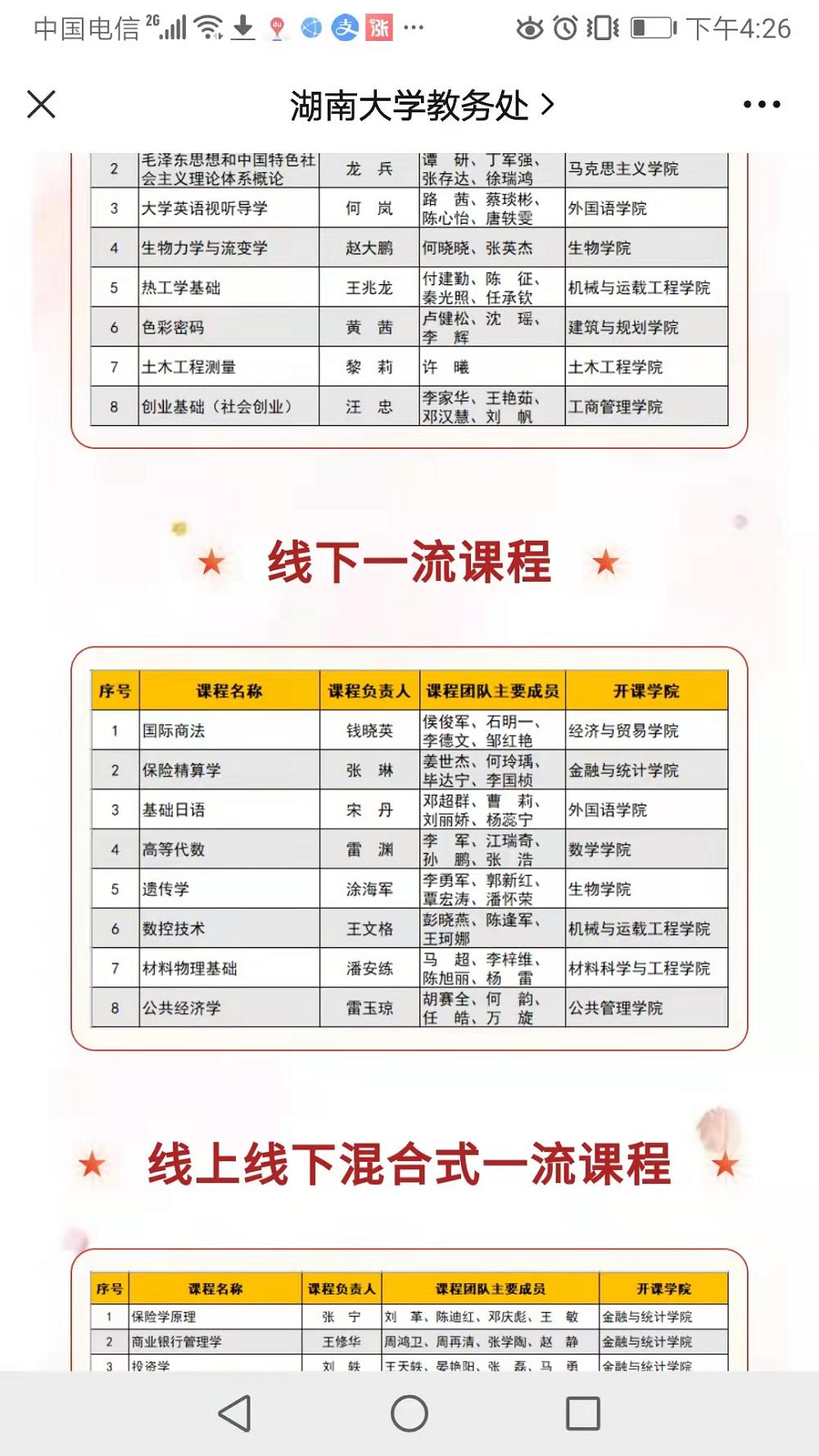 近日,湖南省教育厅发布《关于公布2021年省级一流本科课程评审认定结果的通知》(湘教通〔2021〕322号),公布了2021年湖南省五类一流本科课程认定结果。