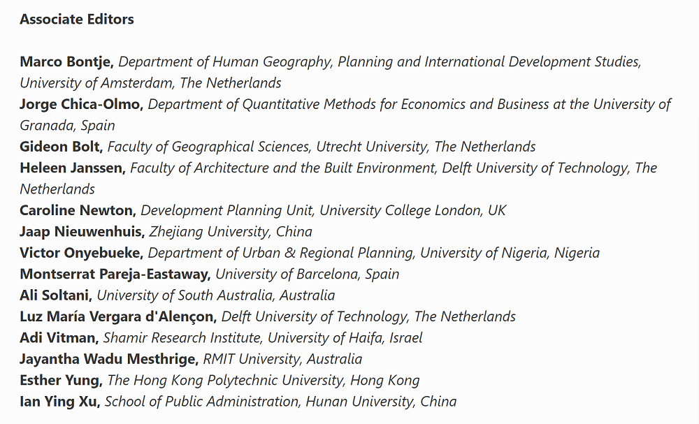 徐莹教授获聘国际著名SSCI期刊《Journal of Housing and the Built Environment》副主编