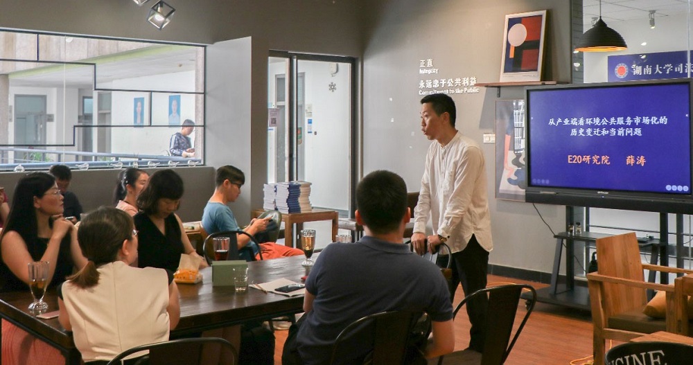 MPA学术午餐会在法学楼咖啡厅举行。本次会议交流的主题为“从产业端看环境公共服务市场化的历史变迁和社会问题”,由E20研究院执行院长薛涛做主题分享,左健教授主持,李连友院长、E20环境平台高级合伙人汤浩以及公管学院多位老师参与交流。