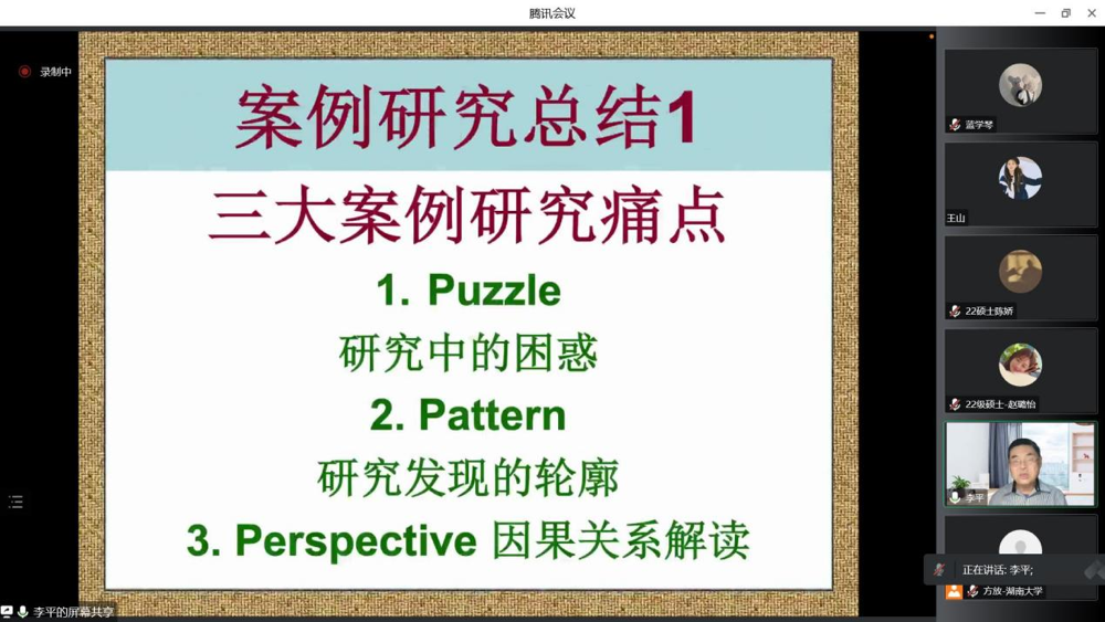 本次讲座李教授主要从案例研究的三个痛点入手,并分别结合自身的研究实践与体会,提出了三把“钥匙”来解决相应的痛点,开启案例研究的“门锁”。