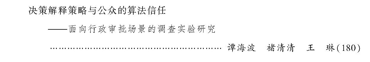 随着人工智能技术的广泛应用,算法已深度参与公共部门决策,但公众对算法决策的信任危机问题尚未解决。现有研究在算法解释对公众算法信任的影响方面多关注事后解释,对事前解释的探讨不足,也尚未从公共部门角度考虑不同信息片面性的决策解释策略对公众算法信任的影响。《决策解释策略与公众的算法信任——面向行政审批场景的调查实验研究》一文针对人工智能算法决策的特点,基于可及性-诊断性理论、信号理论和社会技术系统理论构建“算法-组织-任务”三维分析框架,通过公共卫生许可证延期和教师资格认定两种行政审批的2(解释策略类型:单面信息vs.双面信息)×2(算法决策方式:增强型vs.自动化型)×2(决策复杂度:高vs.低)情景调查实验,探讨了基于不同信息策略类型的算法事前解释对公众感知公共部门算法信任的影响。研究结果表明:算法事前解释的信息片面性对公众算法信任具有显著影响,基于单面信息策略的解释比双面信息策略更有利于增强公众的算法信任;同时,算法决策方式在解释策略类型与公众算法信任的关系中起调节作用;此外,随着决策复杂度提高,算法决策解释策略类型和算法决策方式对公众感知算法信任的交互效应更强。该文揭示了事前解释的重要意义,拓展了信息片面性在算法决策领域的应用,启发公共部门加强算法透明的制度供给和策略设计,在不同信息公开时点选择合适的解释策略,增强公众对算法决策的理解与信任。