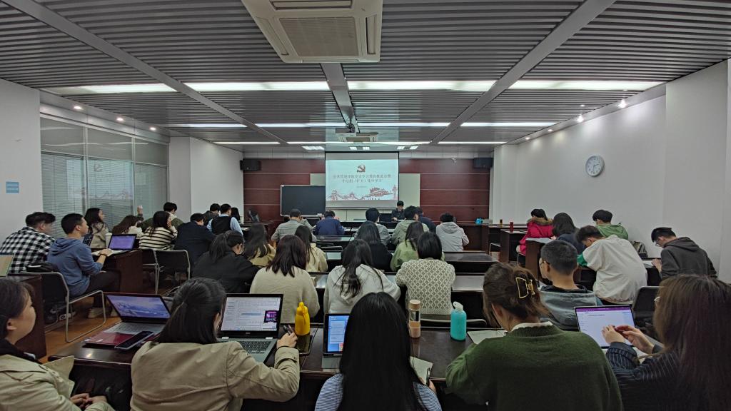 接着,学院党委副书记杜倩博领学《中国共产党组织机构设置的百年历程与经验》。杜倩博将党的组织机构设置分为初创、壮大、系统化、调适、强化五个阶段,并提炼出经验。