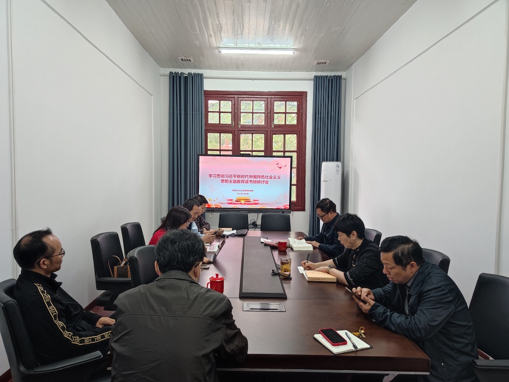 在学院206会议室召开学习贯彻习近平新时代中国特色社会主义思想主题教育读书班研讨交流会。会议由院党委书记付蓉芬主持,学院全体在校中心组成员参加。