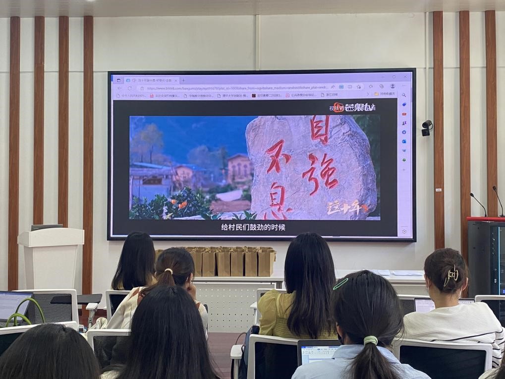 之后,与会党员共同观看了党员教育片《天路书记”的披荆斩棘》。短片讲述了毛相林担任村干部期间带领村民开山辟路、脱贫向富的艰辛历程。时代楷模毛相林心系群众、敢做敢为、不畏艰难、开拓创新的精神深深感动并激励了支部党员,为与会党员上了一堂生动震撼的思政课。