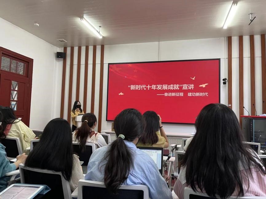 本次党员教育活动以主题宣讲和观看党员教育片的形式开展。首先,支部书记曹丽康同志以“新时代十年发展成就”为主题作党课宣讲,带领与会党员从中国高度、中国深度、中国力度、中国速度、中国跨度等方面回顾新时代中国基建领域取得的重大成果。此次宣讲内容展示了我国科技水平和制造能力的大幅跃升,展现了新时代中国特色社会主义的伟大成就,并激发了与会党员学习中国建设者攻坚克难精神的热情。