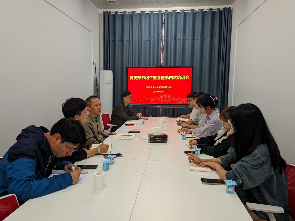 党委于院楼220会议室开展党支部书记工作研讨午餐会暨培训会,学院党委书记宋杰、党委副书记杜倩博、党务与人才培养办公室主任杨锦滔、学生辅导员胡春晖及各学生党支部书记参加会议。在餐会进行过程中,老师们与各学生支部新上任书记进行了交流。