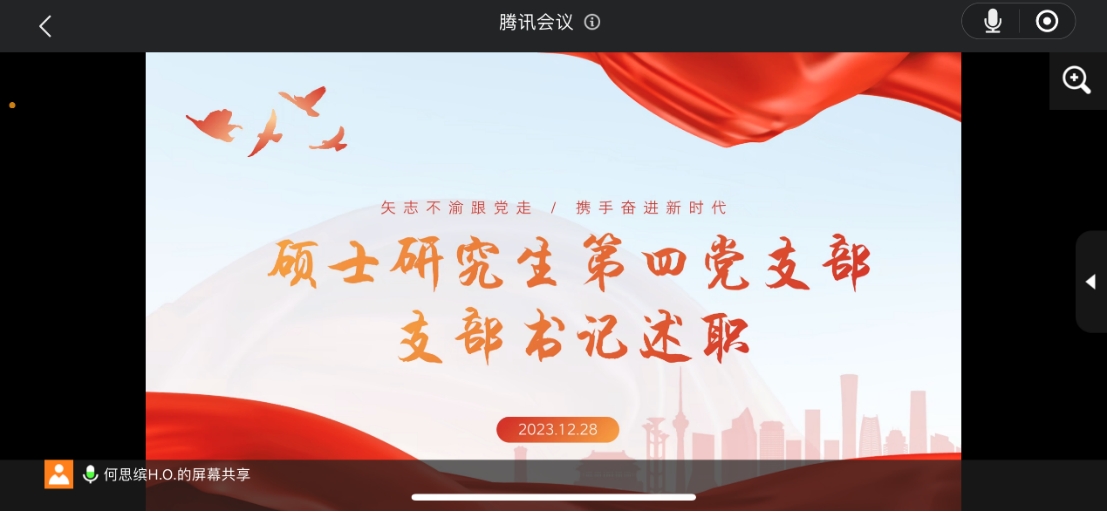 硕士研究生第四党支部召开2023年度支部书记线上述职会议。会议由支部书记何思缤主持,支部全体党员参加。
