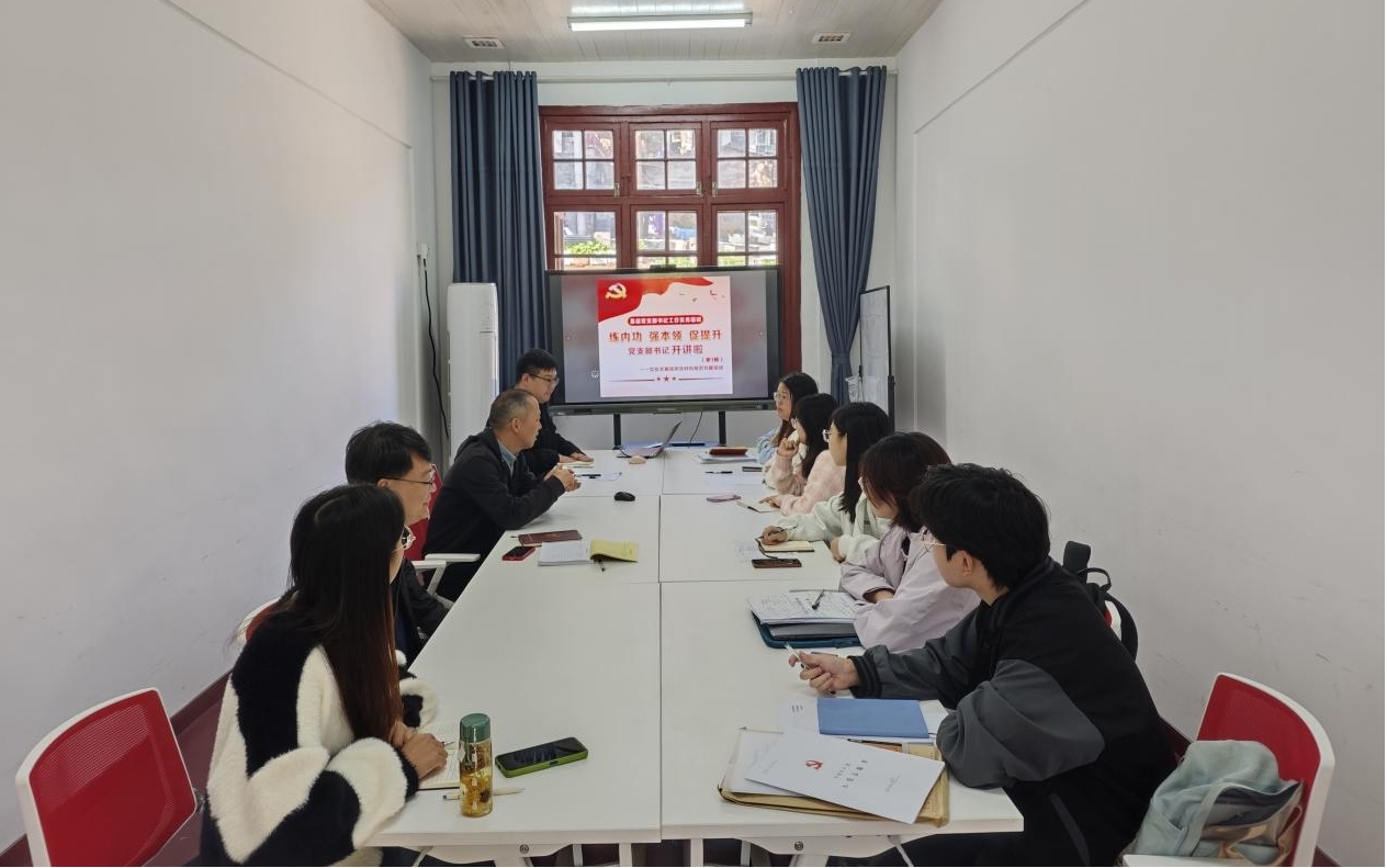 开展基层党支部书记工作实务培训会(第1期)。学院党委书记宋杰、党委副书记、纪委书记杜倩博、辅导员胡春晖、杨锦滔及6位全体学生党支部书记出席本次培训会。