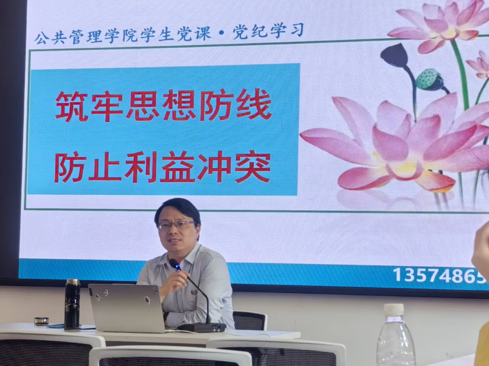 余凯老师围绕“筑牢思想防线,防止利益冲突”对各位入党积极分子们进行党纪学习与教育。