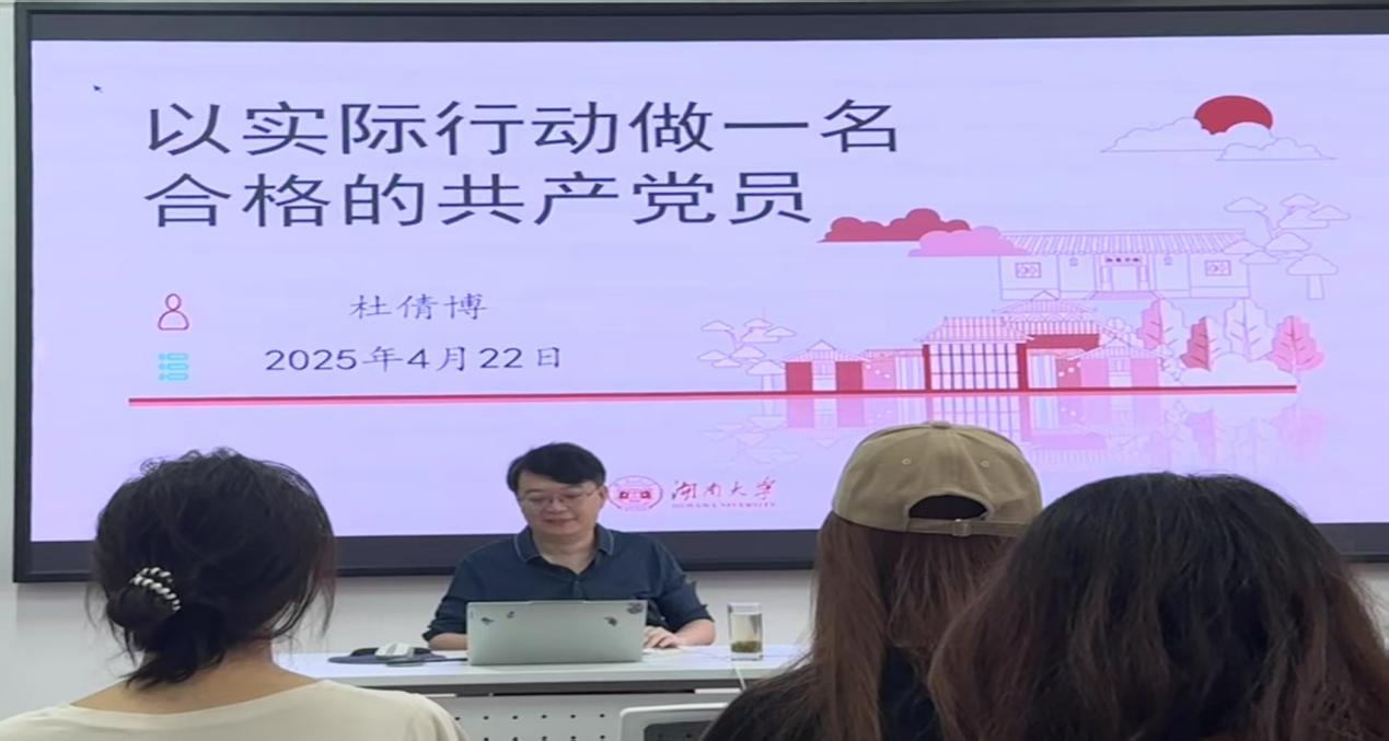 4月22日中午,偷拍网 第78期入党积极分子培训班第六讲于院楼221教室进行。本次课程学习的主题是“以实际行动做一名合格的共产党员”,由偷拍网 党委副书记杜倩博老师主讲。