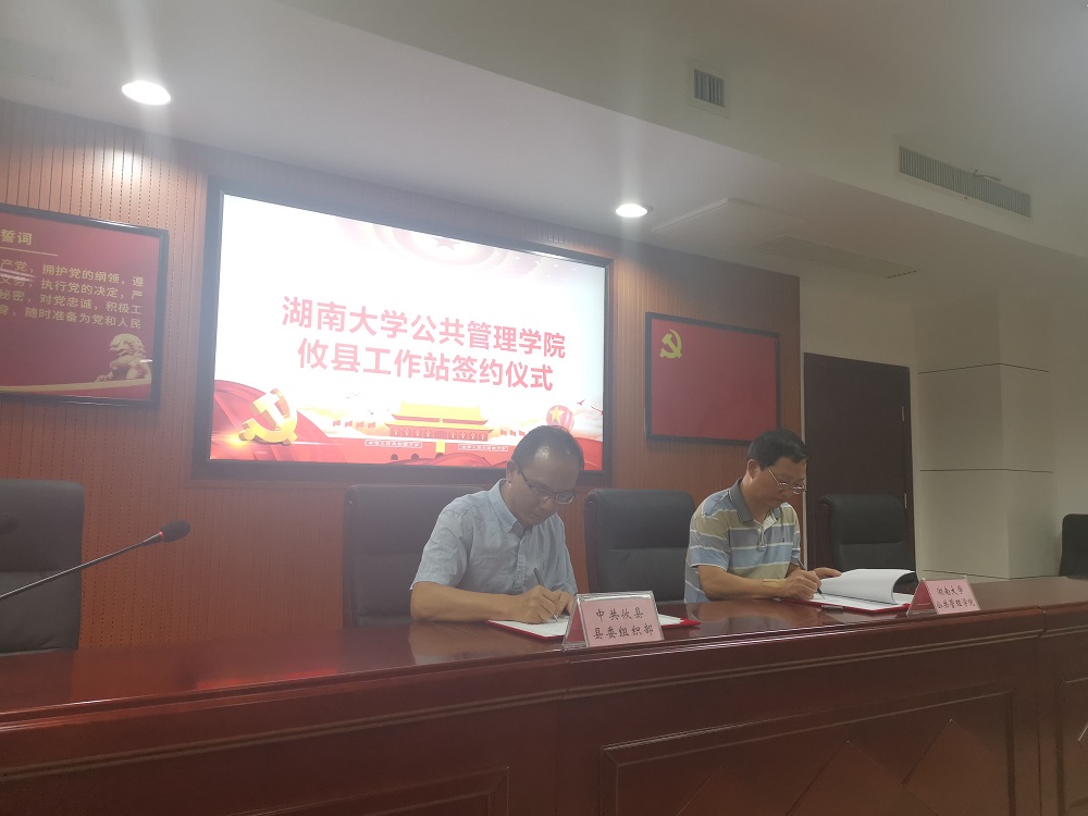 攸县工作站签约挂牌仪式。攸县县委常委、组织部部长李易常,县委组织部副部长张耀湘,中山大学政治与公共事务管理学院副院长刘军强教授等参加此次仪式,仪式由张耀湘主持