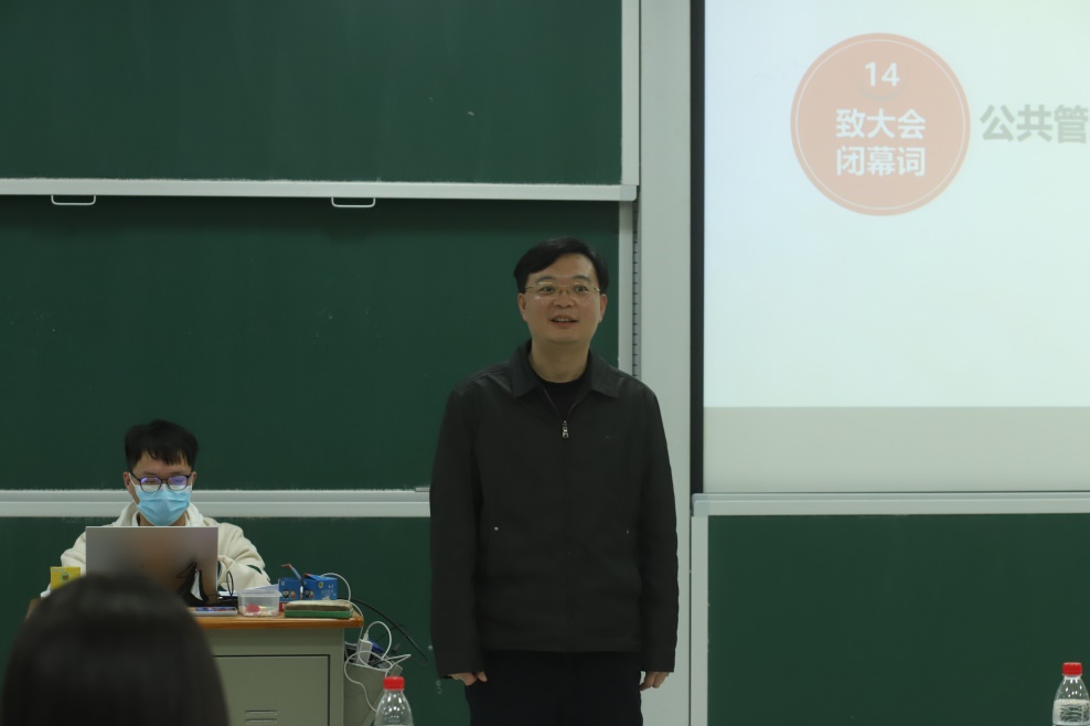 最后,杜倩博致大会闭幕词,他首先向三位当选同学表示祝贺,同时对第二届研究生会成员的工作表示认可。他强调偷拍网
