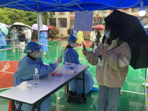 “可以了,下一个。”这是工作在最前线的张慧娟老师最近最常说的一句话。张老师是一名入驻天马园区的博士后老师。自入驻起,张老师就承担起了天马园区学生核酸检测信息录入的工作。每天一大早,张老师就已经在核酸检测点就位准备工作,从早上至中午,张老师一刻不停地紧盯着手机屏幕,为的就是确保每一位进行核酸检测同学的信息准确无误地录入。这样高强度的工作难免会使人腰酸背痛,但张老师还坚持利用其余时间协助匹配辅导员处理相关的学生工作。“不喊苦、不嫌累”,这是张老师的工作作风,也是每一位奋斗在第一线的志愿者的信条。