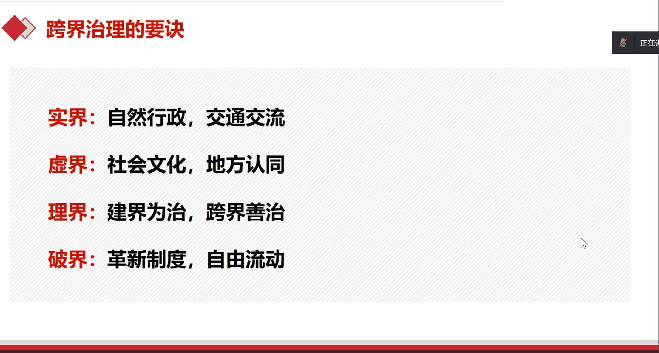 本次讲座从跨界治理的科学内涵、跨界治理的理论构建、跨界治理的实证分析和跨界治理的未来方向四个方面深入展开。