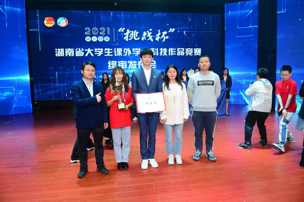 第十七届“挑战杯”大学生课外学术科技作品竞赛一等奖和第十四届“挑战杯”湖南省大学生课外学术科技作品竞赛特等奖。