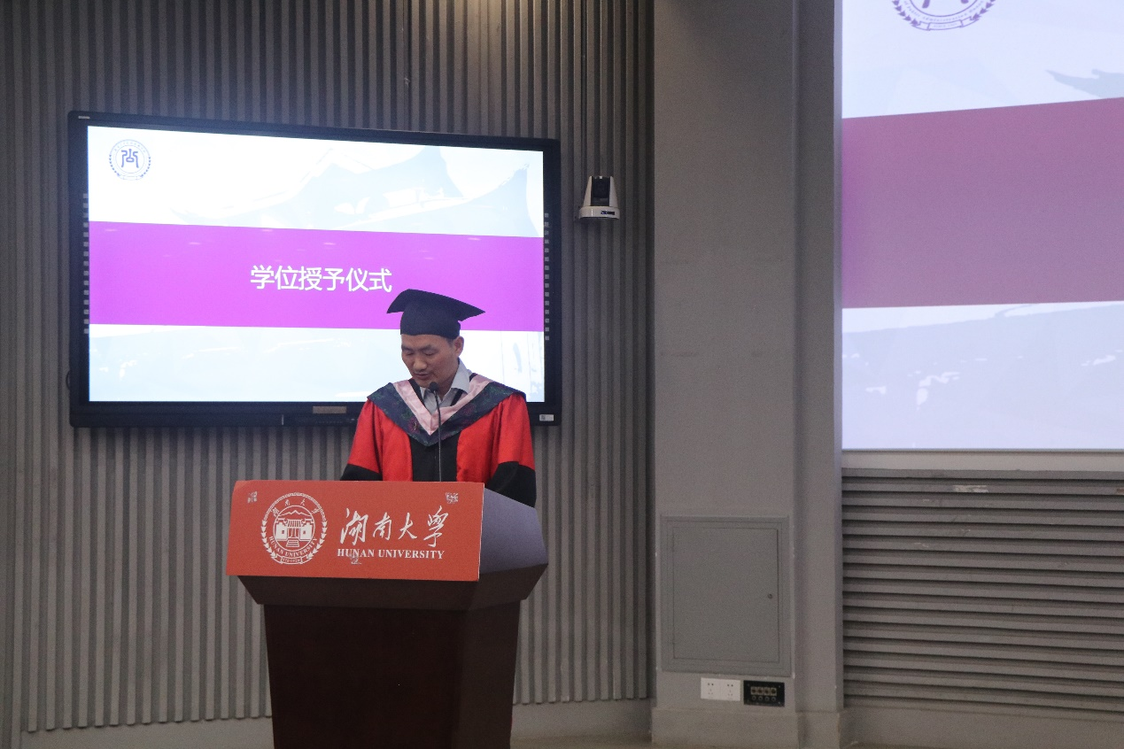在学位授予仪式环节,谭海波副院长宣读了授予本科生、研究生学位的决定,学院学位评定委员会委员分三组为毕业生拨穗并颁发学位证书,并与每一位毕业生合影留念。