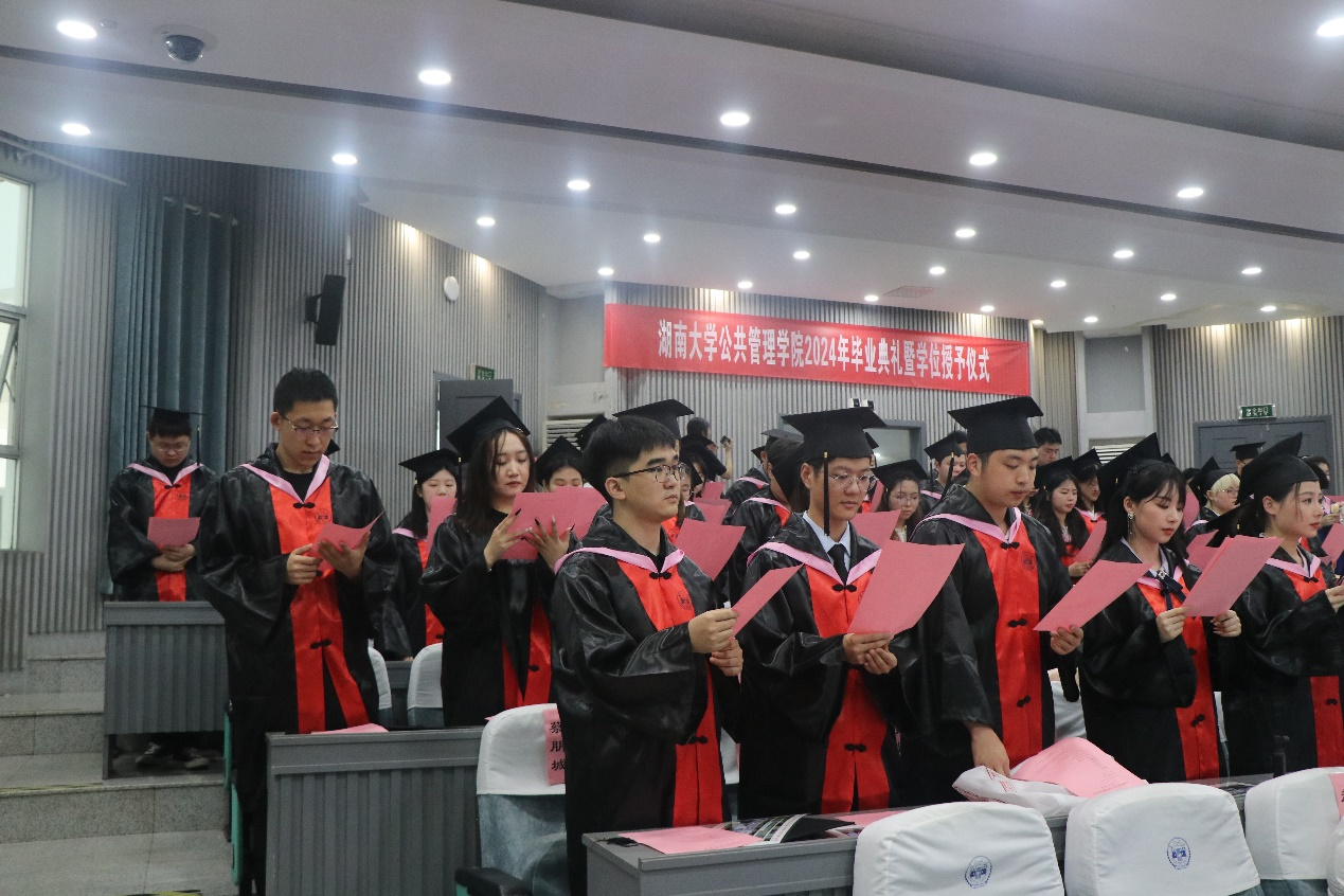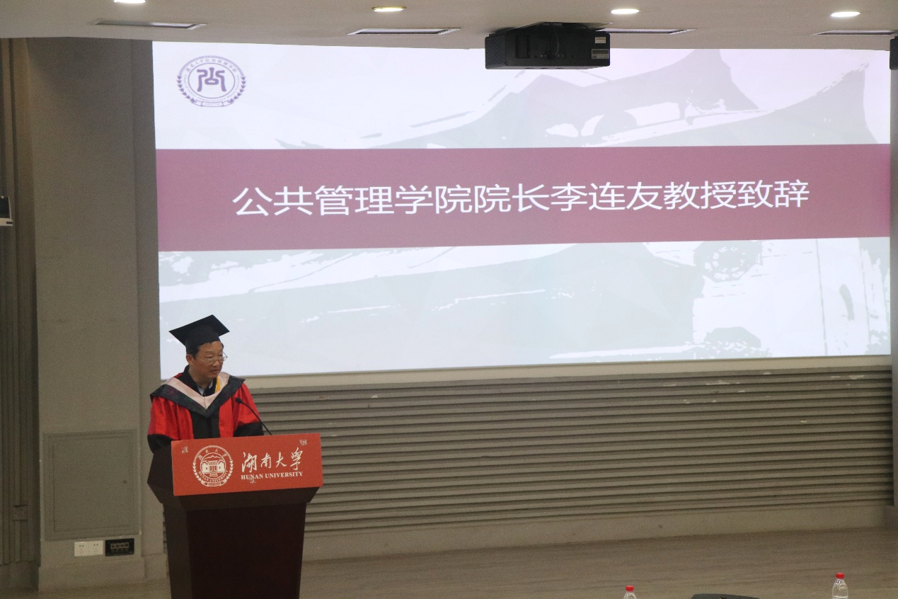 校友会公共管理分会会长李金龙、副院长雷玉琼、副院长徐莹、副院长谭海波、MPA中心主任颜克高、学院教师代表,家长代表,全体本科毕业生、科学学位研究生毕业生,各班学生代表参加仪式。院党委副书记杜倩博主持。