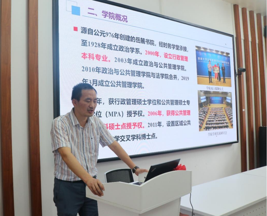 谭海波副院长代表学院致欢迎辞。他首先从湖大印象引入,以最悠久的历史传承、最优美的校园环境、最开放的校园格局,生动形象的概括了偷拍网