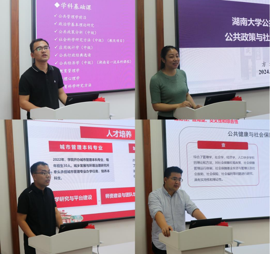 “政府管理与创新研究所”赵岩、“公共政策与社会治理研究所”方放、“城乡发展与环境治理研究所”王斯亮和“公共健康与社会保障研究所”杨晶4位老师,分别从师资力量、研究领域、课程体系、科研成果和学生发展等方面,向参会营员介绍了各自研究所的情况。互动交流环节,针对同学们提出的研究方向、研究方法和社会实践等问题,谭海波、方放、王斯亮、杨晶、赵岩老师一一进行了详尽的回答。