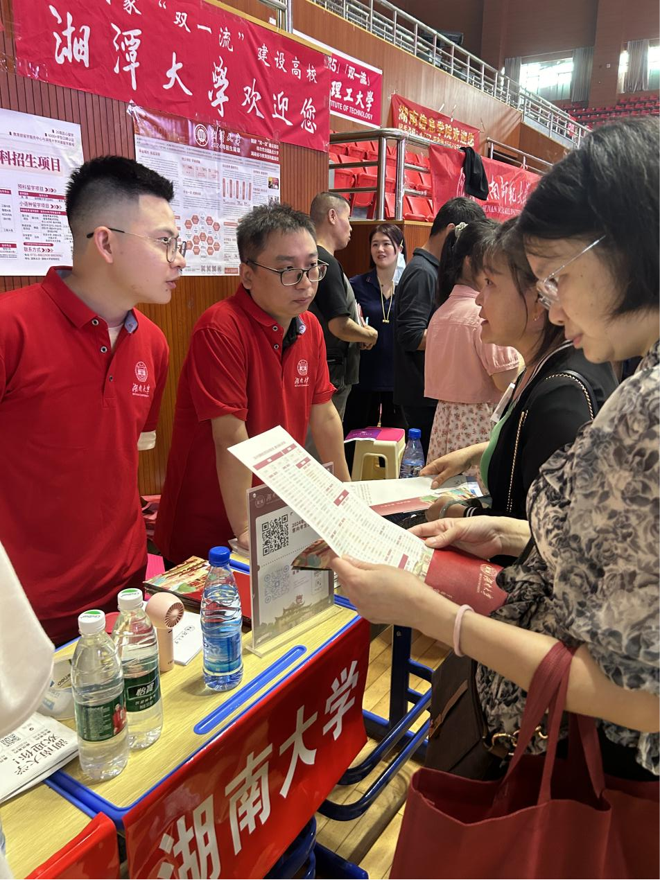 6月25日至28日,偷拍网 负责的湘潭市招生咨询工作顺利开展。工作组一行14人、分7组赴湘潭市的湘潭市一中、湘潭县一中、凤凰中学、湘乡市一中、东山学校等8个省示范中学,开展了一系列精心策划的招生宣传活动。