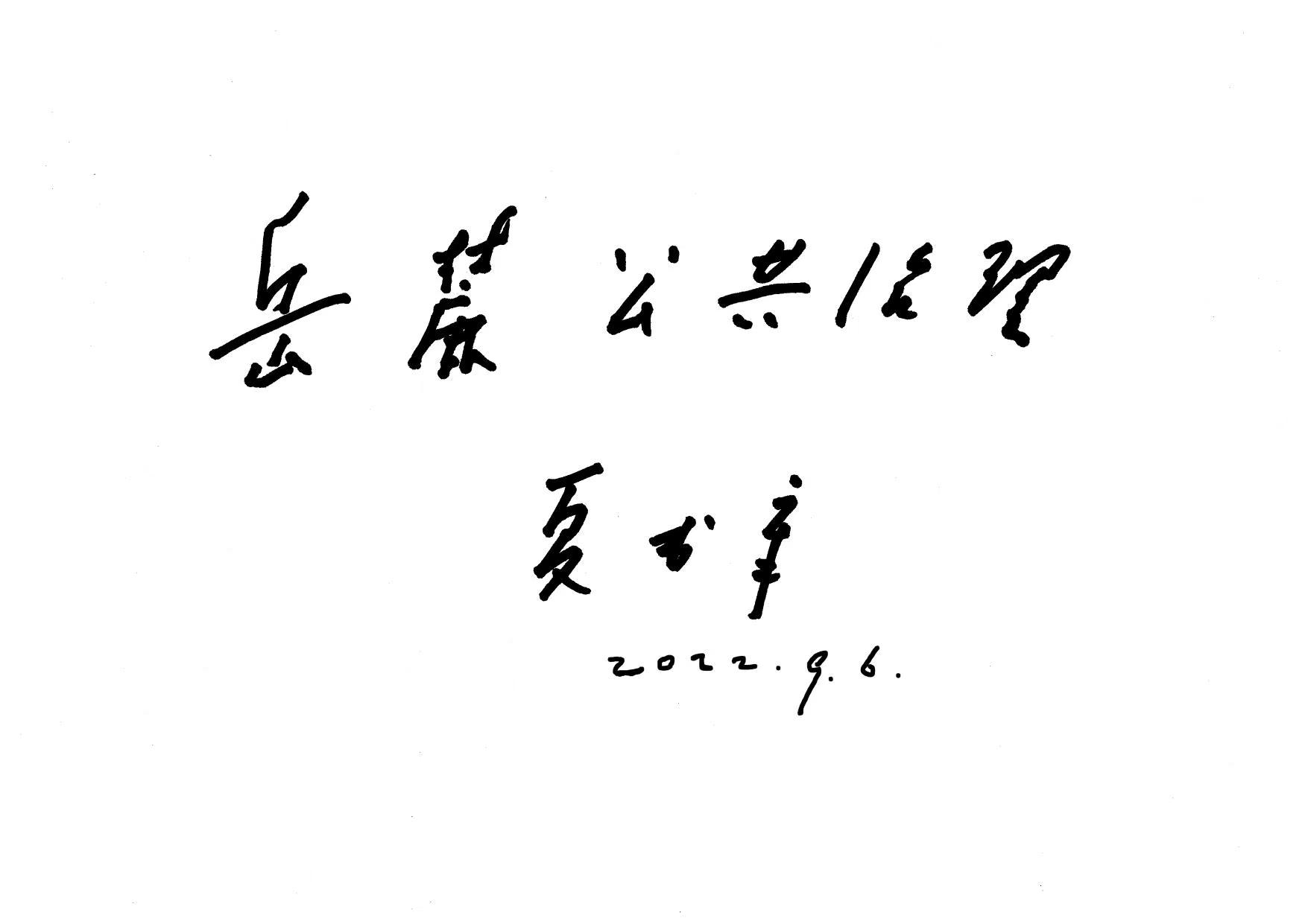 的《岳麓公共治理》期刊题写了刊名,这不仅是对期刊质量的认可,更是对期刊未来发展的鼓励与鞭策。先生的题字,如同春风化雨,滋养着期刊的每一篇文章,激励着每一位作者与读者追求真理、探索真知。