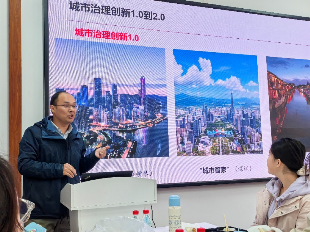 午餐会上,徐莹教授首先为大家带来了一场题为“城市治理的创新实践及对城市管理专业就业的影响”的专题讲座。徐莹教授在讲座中指出,城市治理在初期(1.0版本)面临着公共服务诉求激增而基层人员负担过重的挑战,为此,政府积极引导企业参与城市治理,如珠海横琴的“物业城市”模式、深圳的“城市管家”项目等,企业充分发挥自身优势,对城市公共空间和服务项目进行了集中式、一体化的高效管理。而从城市治理1.0到2.0的跨越,其背后的驱动力在于公共服务需求与基层人力短缺、公共服务支出增加与政府财政压力之间的矛盾。以广州为例,其在城市治理创新上探索了两大方向:一是市场化改革,不断拓宽企业参与的领域;二是公共资源的开发利用,通过盘活闲置资源等方式,实现企业可持续运营和创收,实现了政府、居民、企业的多方共赢。最后,徐莹教授详细介绍了城市管理专业的发展历程、当前的研究热点以及未来的发展趋势。他强调,随着城市化进程的加速,城市管理专业人才的需求将日益增长,同学们应紧抓时代机遇,不断提升自己的专业素养和实践能力。