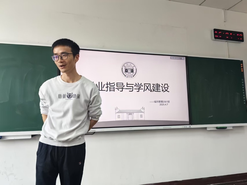 城市管理2301班于中楼315教室召开了2025春季学期学业指导与学风建设座谈会,班主任夏畅老师及我班全体同学参与本次会议。