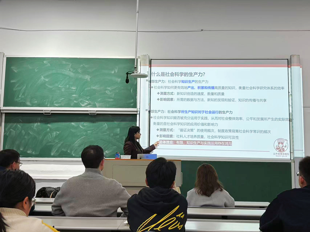 在讲座主体部分,高翔教授首先阐述了社会科学“内部生产力”与“外部生产力”的概念。其次,重点探讨了生成式人工智能如何引领科研范式变革,包括其作为研究辅助工具在文本分析、数据处理与社会模拟等方面的应用,并介绍了“PolicyLLM政策大模型”和“硅样本”社会模拟等具体工具与场景。同时,她也指出了人工智能应用中可能存在的风险,如数据偏见、模型幻觉与不当应用。再次,高翔教授重点介绍了垂直领域生成式人工智能工具“公共管理百晓生”的功能架构,包括其知识库、算法优化及三种应用模式,并展示了该工具在公共管理研究与教学中的应用实例。最后,高翔教授从工具革新延伸到科研组织与教育范式变革,讨论了人工智能在提升知识内部生产力与弥合知识应用鸿沟方面的潜力,并提出了公共管理学科知识体系重构的相关思考。针对MPA师生的实际应用,她提出“以善引路、以真架桥”的实践原则,并指出要坚守学术伦理,将人工智能作为思维启发与效率提升工具,警惕认知退化风险,对研究论点与论证过程保持最终责任。