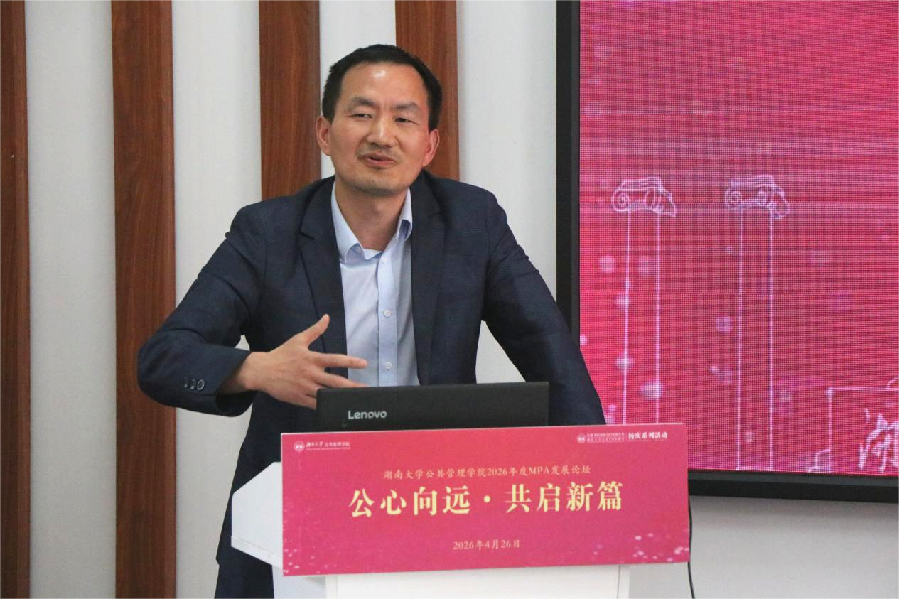 院长谭海波教授进行总结发言。他强调了MPA发展论坛作为学院品牌活动的重要意义,并从“故事会”、“意见箱”、“加油站”三个方面指明了MPA发展论坛的定位。最后,谭院长表达了对学院MPA的发展期许,他呼吁MPA学生要在工作和学习中找到平衡,在创造社会价值的同时实现个人价值。同时,学院将持续优化办学条件与管理机制,夯实平台基础,提升服务能力。