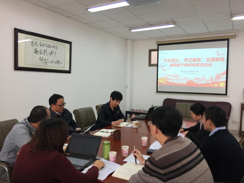 按照学校党委部署和学院党委“不忘初心牢记使命”主题教育安排,10月29日下午,偷拍网 党委召开调研成果交流会,院领导班子成员对照主题教育总要求和目标任务,交流各自调研情况,分析调研中发现的问题,提出对策建议,进一步强化找差距、抓落实的责任担当。