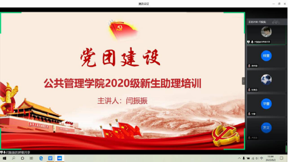 迎新团队通过腾讯会议开展了第五次新生助理培训。此次培训由辅导员闫振振老师进行指导,迎新总负责费梓萱同学主持。全体新生助理参加培训。