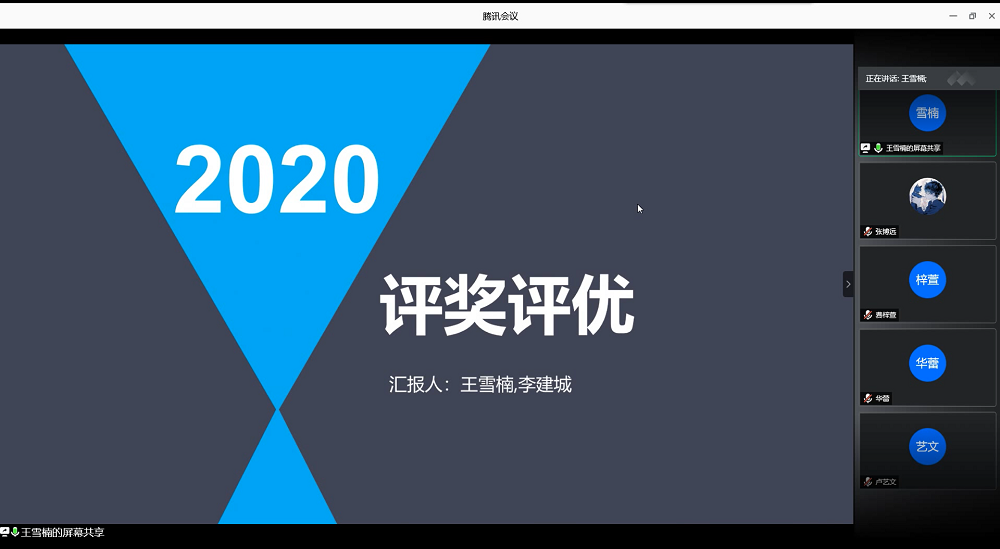 会议伊始,王雪楠同学从评奖评优、研究生推免两个方面开展讲解。她首先详细介绍了校优秀班集体、校优秀十佳班集体、校优秀学生干部、校优秀团员等评优项目的参评标准,随后讲解了各项奖学金的获奖条件,让新生助理对于评奖评优的相关细则有了更全面的认识。王雪楠同学还向新生助理们讲解了综测成绩的计算方式、研究生推免的条件及推免流程的具体操作方式,让新生助理对这两方面的知识有了更清晰的了解。