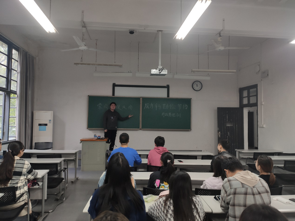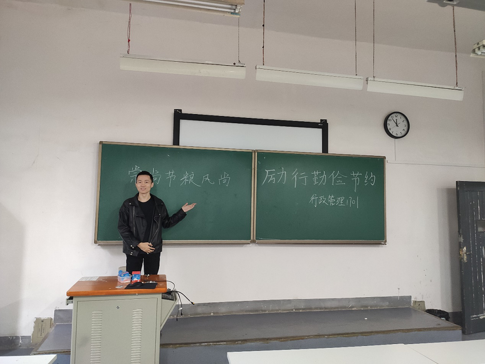 行政管理1701班在教学东楼201教室开展“崇尚节粮风尚,厉行勤俭节约”主题班会。班会的主要内容有介绍勤俭节约好风尚的传统以及班级同学分享勤俭节约小故事,共有14名同学参加。