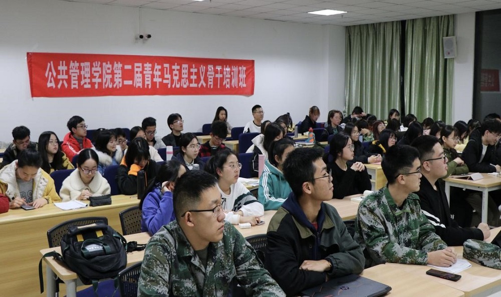 会议伊始,干训班全体成员共唱国歌,闫老师致辞并宣布第二届干训班开班。随后公管院团委组织部姚璐同学宣读《公共管理第二届青年马克思主义骨干培训班学员考核细则与课程设置》,向同学们详细介绍干训班的活动的形式、教学内容及考核标准。