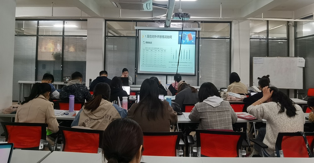 在谈及“2021年宏观经济政策”时,华蕾分享道:“通过研读2021年政府工作报告,我认为我国宏观经济运行主要释放出以下五个信号:一是继续坚持就业优先政策,二是保持政策连续性和可持续性,三是帮助中小微企业恢复元气,四是加大研发投入、提高科技创新能力;五是继续实施高水平对外开放。”在“深入推进重点领域改革”主题研讨中,张家宁和蔡情两位同学通过客观详实的数据向同学们展示了国家在重点领域改革所取得的成就,并在借鉴学者研究的基础上指出改革存在的问题,最后,她们指出,立足新发展阶段,我国应通过持续深化改革,加快构建高水平市场经济体制、充分激发各类市场主体活力,为构建新发展格局提供有力支撑和坚实基础,实现经济行稳致远。
