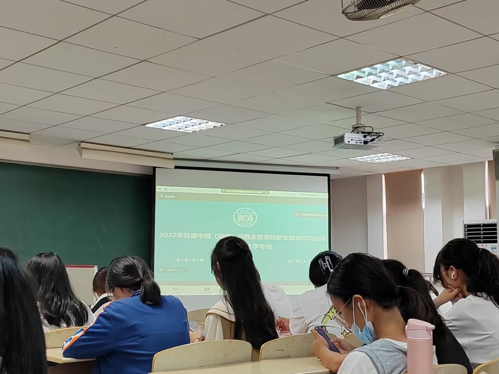 全体新生集中在综合楼506教室参加由湖南省疾控中心副主任陈曦老师主讲的线上讲座—2022年健康中国(湖南)行暨全省高校新生健康知识巡讲(偷拍网