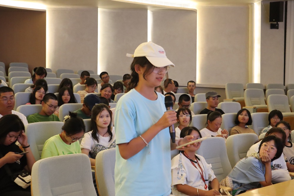 告别会伊始,迎新团队成员从自身经历、选择迎新的缘由、与新生相处的点点滴滴等角度说起,依次抒发了自己这段时间以来的感想,并对新生们寄予殷殷嘱咐与期望。说到动情之处,迎新团队成员们真情流露,流下了不舍与感动的眼泪。回首迎新生活,有的班导分享道,其实自己也没有去过医院,但身为班导必须要勇敢担负起责任,在帮助新生的时候自己也在获得历练与成长。有的班导坦白道,其实刚开始觉得很烦很累,感觉自己坚持不下去,但一路走来与大家亲密相处、彼此相互关照,还是很感激这段相遇的旅程。迎新团队发表完毕告别感言,新生们也主动分享心路历程和对迎新团队的感谢之情,回顾在军训过程中的成长和收获,真挚的分享让在场的每个人都感受到了深刻的情感共鸣。