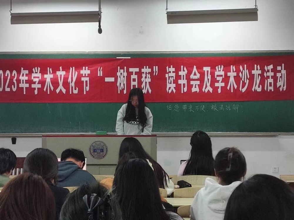 2023年学术文化节系列活动之“一树百获”读书会及学术沙龙活动在综合楼101顺利进行,此次活动共有五位同学进行书籍分享,并邀请了何韵老师进行点评总结,可谓是干货满满。