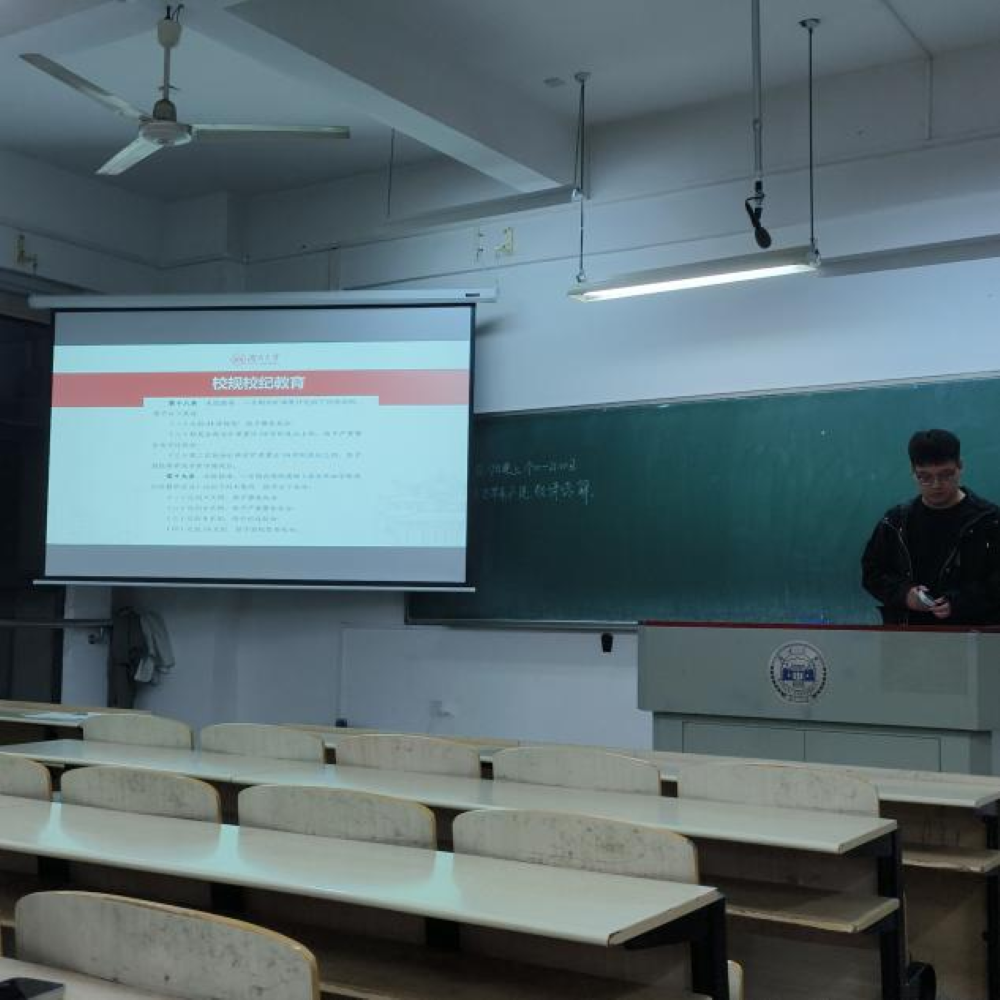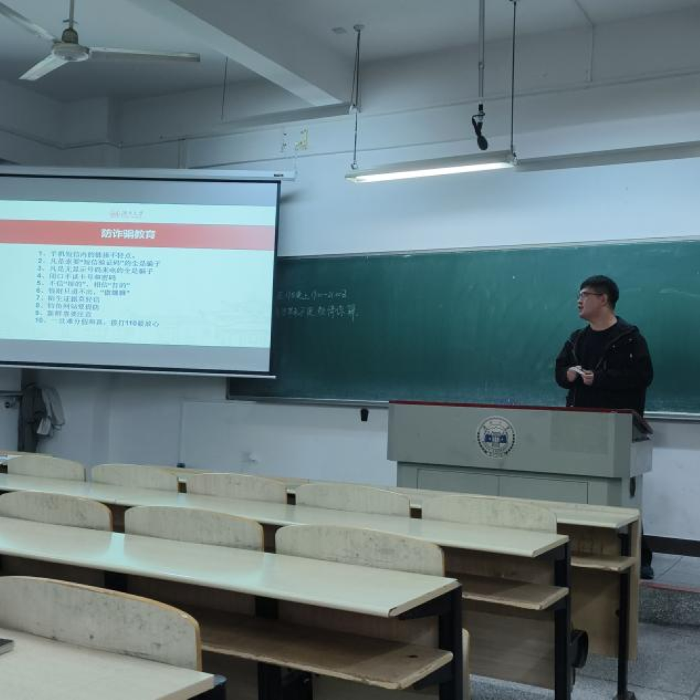 为帮助2023级新生适应大学生活,加强安全意识,维护好人身健康安全,平安顺利的度过未来美好的大学四年,1119日,辅导员胡春晖开展了一场以“安全教育”为主题的年级会。