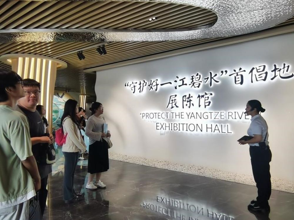 在“守护好一江碧水”首倡地展陈馆,实践团队通过丰富的图文资料、生动的实物展示以及详尽的解说,全面了解长江流域的生态环境现状、挑战及治理措施,激励着每一个人坚定为保护碧水蓝天贡献自己力量的决心。