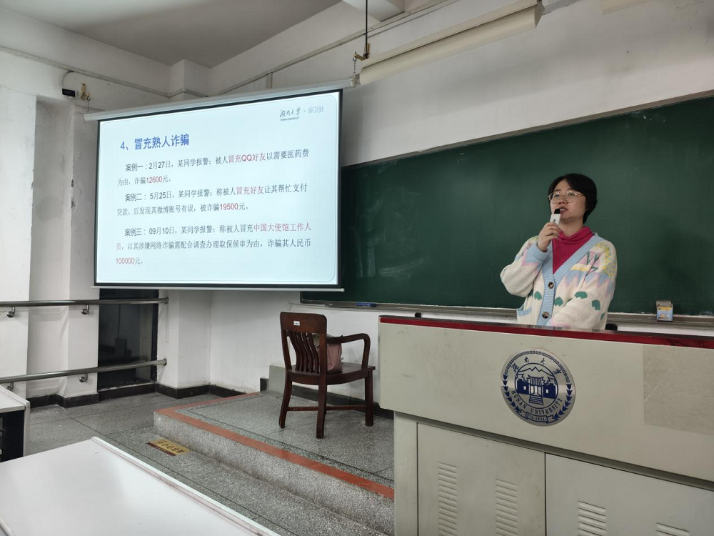 为提高学生的安全意识和应对突发事件的能力,偷拍网 于11月3日在综合楼514举办了一场大学生安全讲座,24级全体同学参与。保卫部李雪老师主讲,内容涵盖了校园安全、心理健康以及应急处理等十个方面。