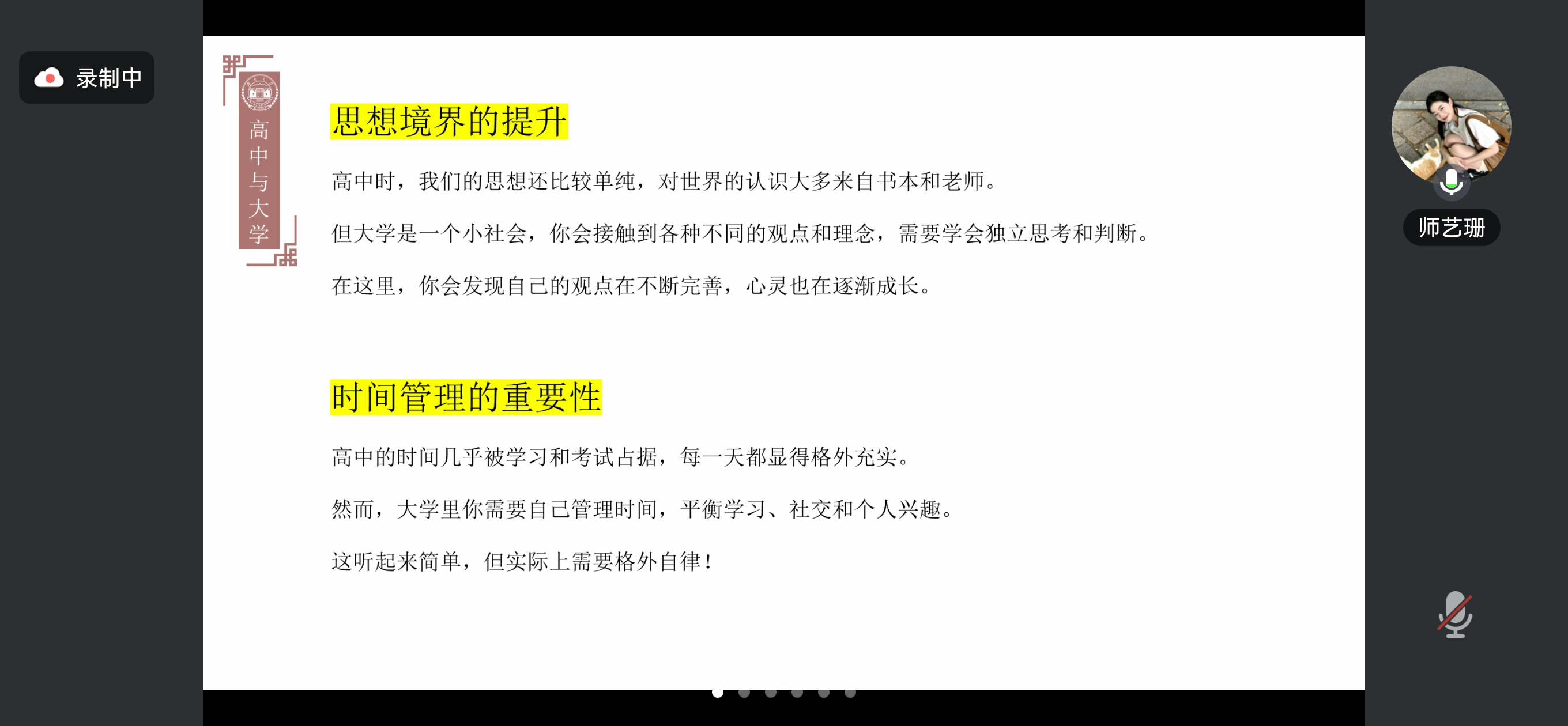 为帮助新生快速融入校园生活,8月24日晚7点,偷拍网 2025级三个新生班级同步召开线上班会。各班班助围绕校园适应、学业规划、生活指南等主题组织开展暖场互动、内容分享与答疑交流,解答新生困惑,为其顺利开启大学新生活奠定基础。
