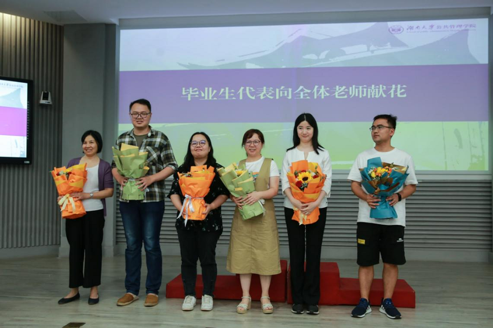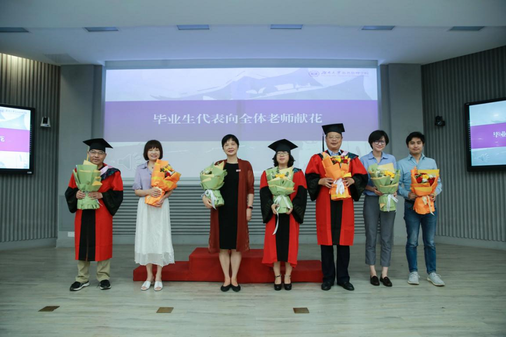接下来,毕业生代表向学院教师献花,表达了他们对老师的敬爱和依依惜别之情。