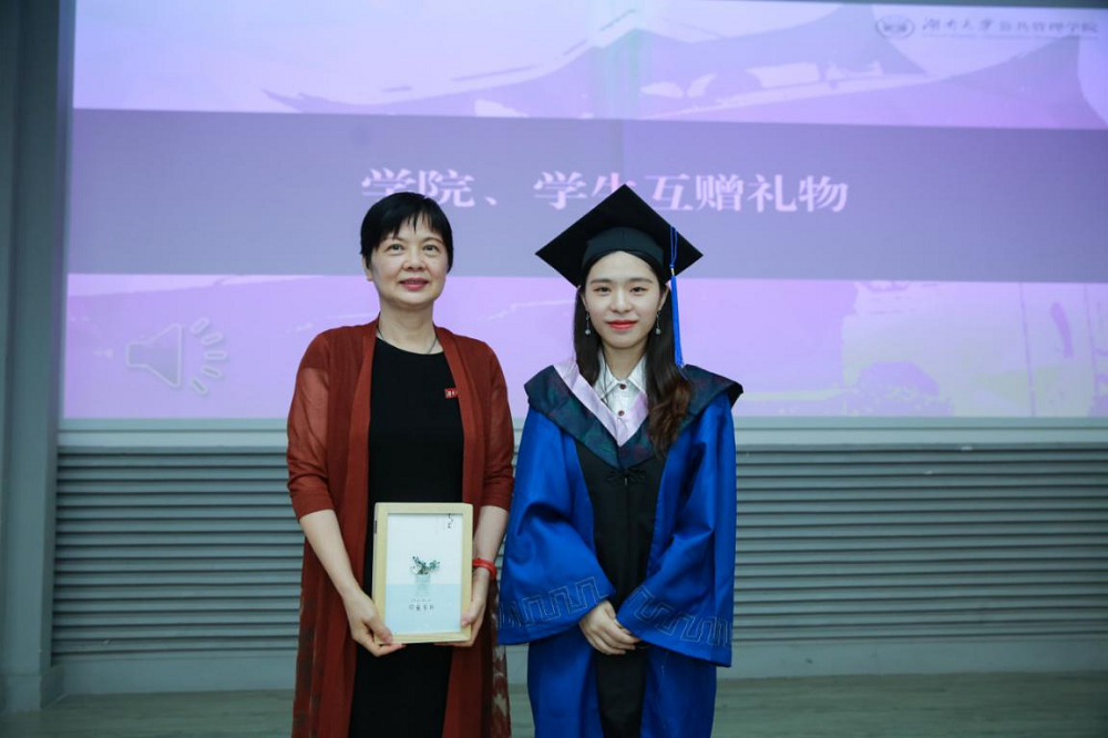会上,学院与毕业生互赠礼物。付蓉芬书记代表学院,分别接受了2017级行政管理本科1班、2017级行政管理本科2班、2018级科学学位研究生班、MPA毕业班代表馈赠学院的礼物,向他们表示感谢,并与他们合影留念。偷拍网