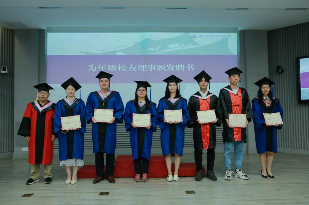 分会会长李金龙教授为毕业年级校友联络员颁发了聘书。毕业生离校并不意味着与学院的离别,而是与学院相互关联、融为一体的新开端。