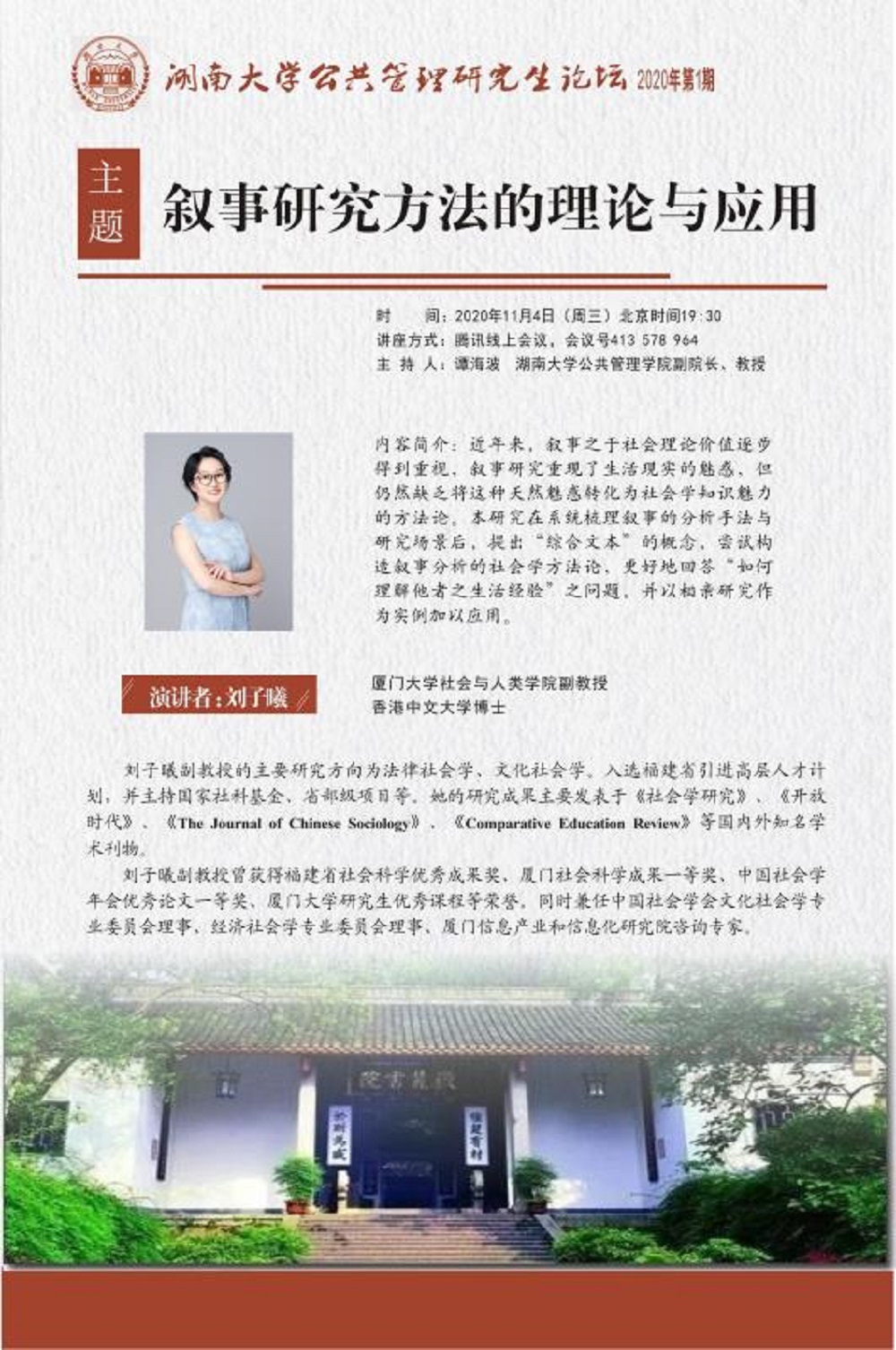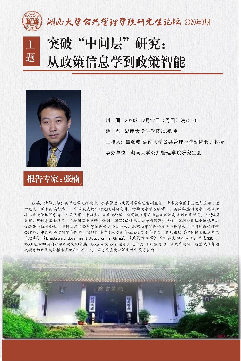 (六)学院公众号“HNU公管学子”于2020年11月设立研究生专栏,并划分为研究生党建工作、公管学子风采、学术信息专递、学生活动展示4个板块,致力于宣传研究生党建工作、优秀典型、学术活动及学生活动、扩大学院影响力,现已发布推文67篇